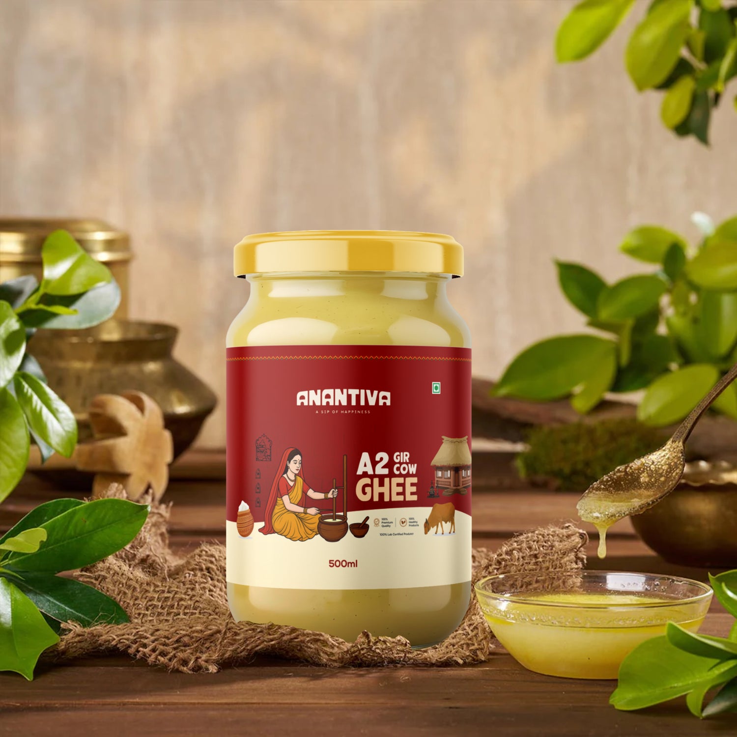 We bring you 100% natural A2 Gir Cow Ghee, made from the milk of pure-bred Gir cows, using the traditional bilona method. Each drop reflects the care, devotion, and authenticity that go into crafting this golden elixir.