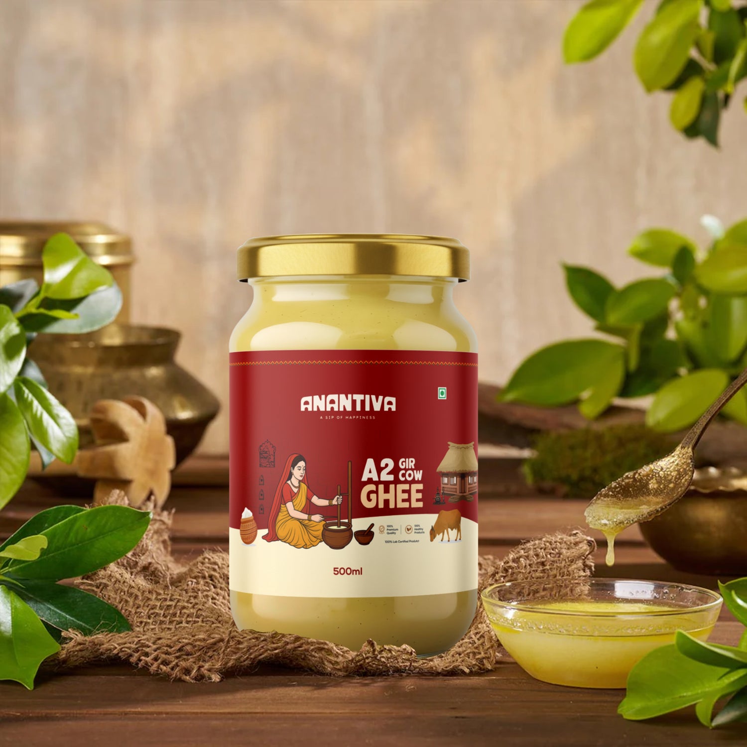 At Anantiva, purity isn’t just a promise — it’s our way of life. We bring you 100% natural A2 Gir Cow Ghee, made from the milk of pure-bred Gir cows, using the traditional bilona method. Each drop reflects the care, devotion, and authenticity that go into crafting this golden elixir.